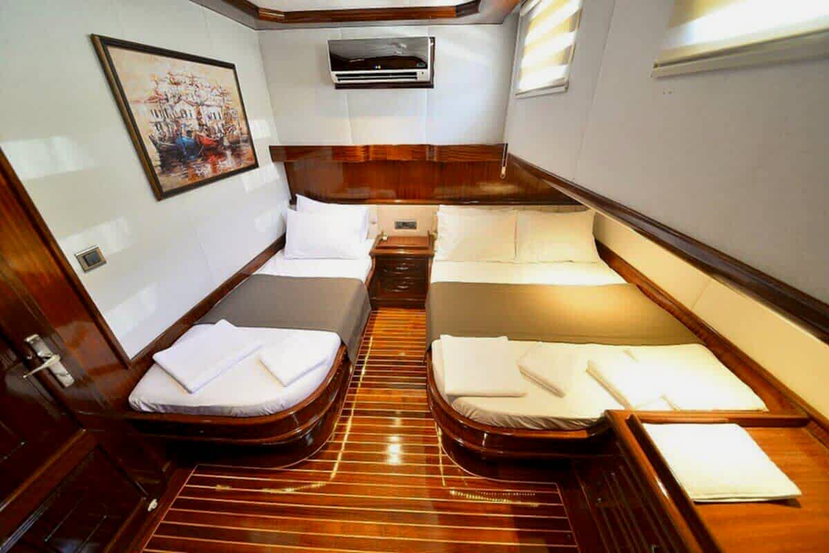 Yelkenli ve katamaran tipi teknelerde kaptan baş altında yer alan özel bir kabinde kalır. Ama her teknede skipper adı da verilen bu özel kabin bulunmayabilir. Bu tür teknelerde kaptan da teknede bulunan boş kamaralardan birinde kalacaktır. Bu nedenle konaklamalı kiralamalarda, tekne kapasitesi ve misafir sayısının dikkatlice hesaplanması ve karşılıklı teyit edilmesi gerekmektedir. Motoryatlarda ve guletlerde çoğunlukla kaptan ve mürettebat için özel kabinler bulunmaktadır.