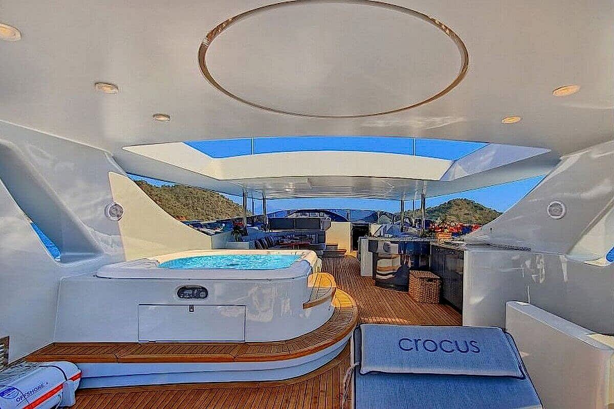 Crocus, Muğla'nın Fethiye ilçesinin Göcek sahilinde bulunan 40 metre uzunluğundaki lüks sınıf kiralık yat. 6 kabinli yatta 12 kişi konaklama hizmeti alabilir. Göcek'te sezon süresince saatlik, günlük ve haftalık olarak kiralama imkanı vardır. Günlük kiralama ücreti 11.250 € olan Crocus yatın saatlik ve haftalık kiralama ücretleri yat kiralama firmamızla iletişim kurularak öğrenilebilir. Crocus Yat rezervasyonu için zaman kaybetmeden hemen bizi arayın!
