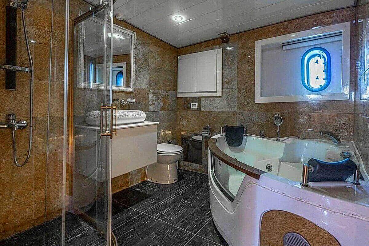 Esma Sultan, Muğla'nın Fethiye ilçesinin Göcek koylarında hizmet veren 42 metre uzunluğunda lüks sınıf kiralık gulet. 7 kabinli gulette 14 kişilik misafir gruplarının konaklaması mümkündür. Göcek'te yaz sezonu süresince günlük ve haftalık kiralama kiralama imkanı vardır. Günlük kiralama ücreti 5.750 € olan Esma Sultan guletin haftalık kiralama için gulet kiralama şirketimizden fiyat teklifi alınmalıdır. Esma Sultan Gulet rezervasyonu için arayın!