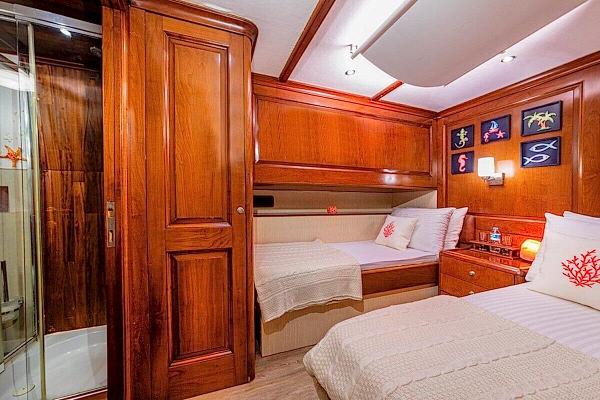 Yelkenli ve katamaran tipi teknelerde kaptan baş altında yer alan özel bir kabinde kalır. Ama her teknede skipper adı da verilen bu özel kabin bulunmayabilir. Bu tür teknelerde kaptan da teknede bulunan boş kamaralardan birinde kalacaktır. Bu nedenle konaklamalı kiralamalarda, tekne kapasitesi ve misafir sayısının dikkatlice hesaplanması ve karşılıklı teyit edilmesi gerekmektedir. Motoryatlarda ve guletlerde çoğunlukla kaptan ve mürettebat için özel kabinler bulunmaktadır.